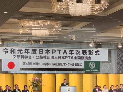 11月15日(金)、東京のホテルニューオータニで、令和元年度の日本PTAの年次表彰式がありました。 広島市からは日本PTA会長表彰(団体)として古田台小学校PTA が、また(個人)として3名受賞されました。 受賞された皆様、おめでとうございました。